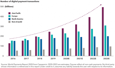 This is one area where emerging markets are ahead of the U.S. We’ve seen this trend for several years in developing countries — where many consumers had no bank accounts but did have mobile phones and adopted mobile payment technology quickly. The pandemic accelerated use of digital payments around the world, including places where it hadn’t previously been ingrained in daily life. Once this crisis is over, I think a lot more people will be comfortable making digital payments, and they probably won’t feel the need to use cash as much as they did before.